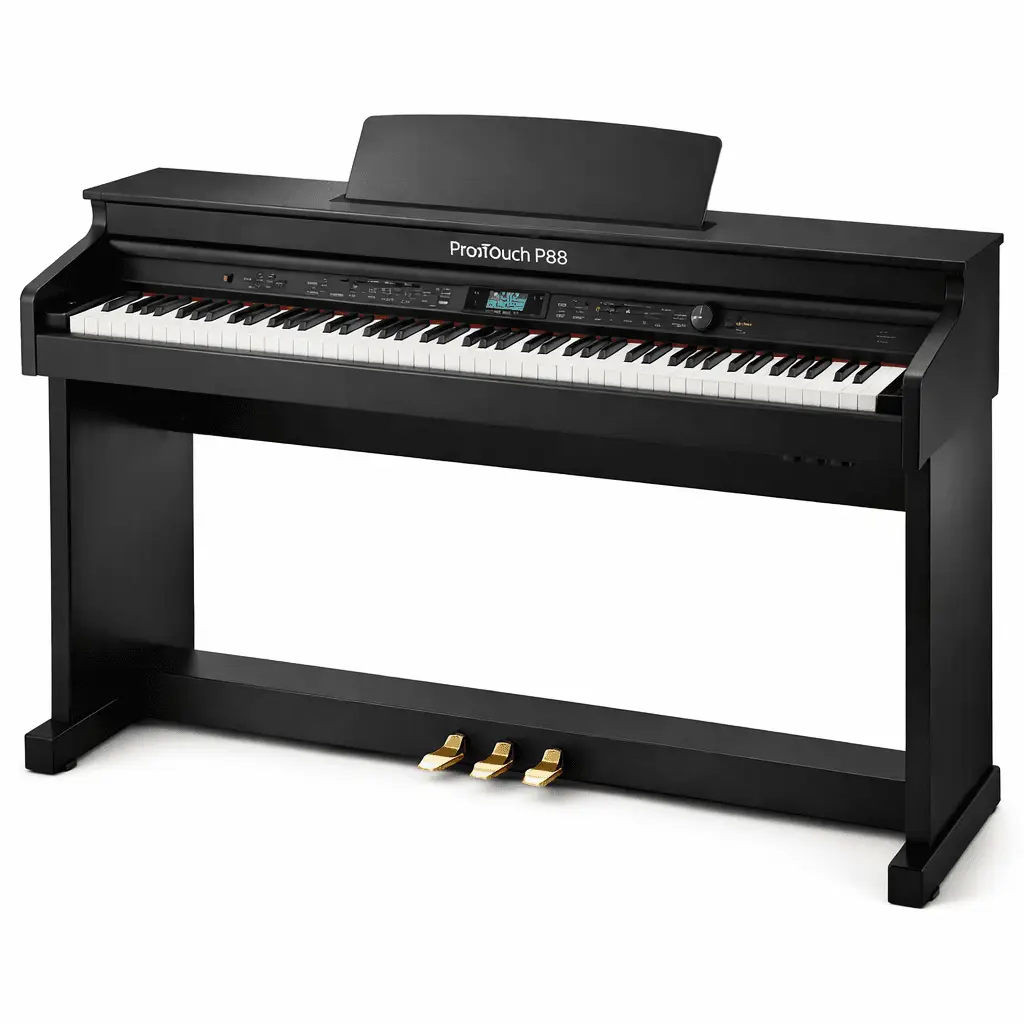 Designed for serious students, advancing musicians, and gigging performers, the ProTouch P88 balances portability, playability, and professional-level sound in a clean, modern cabinet.